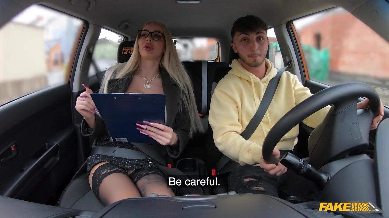 Сисястая инструкторша по вождению дает уроки ебли в машине