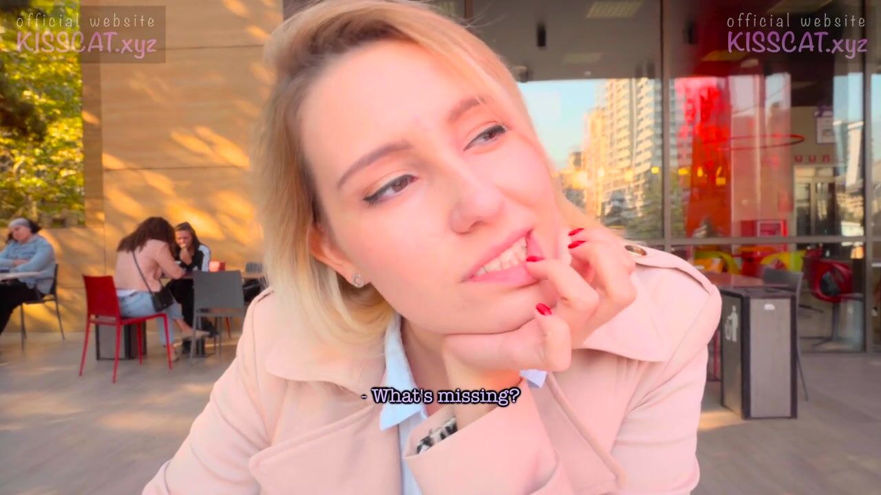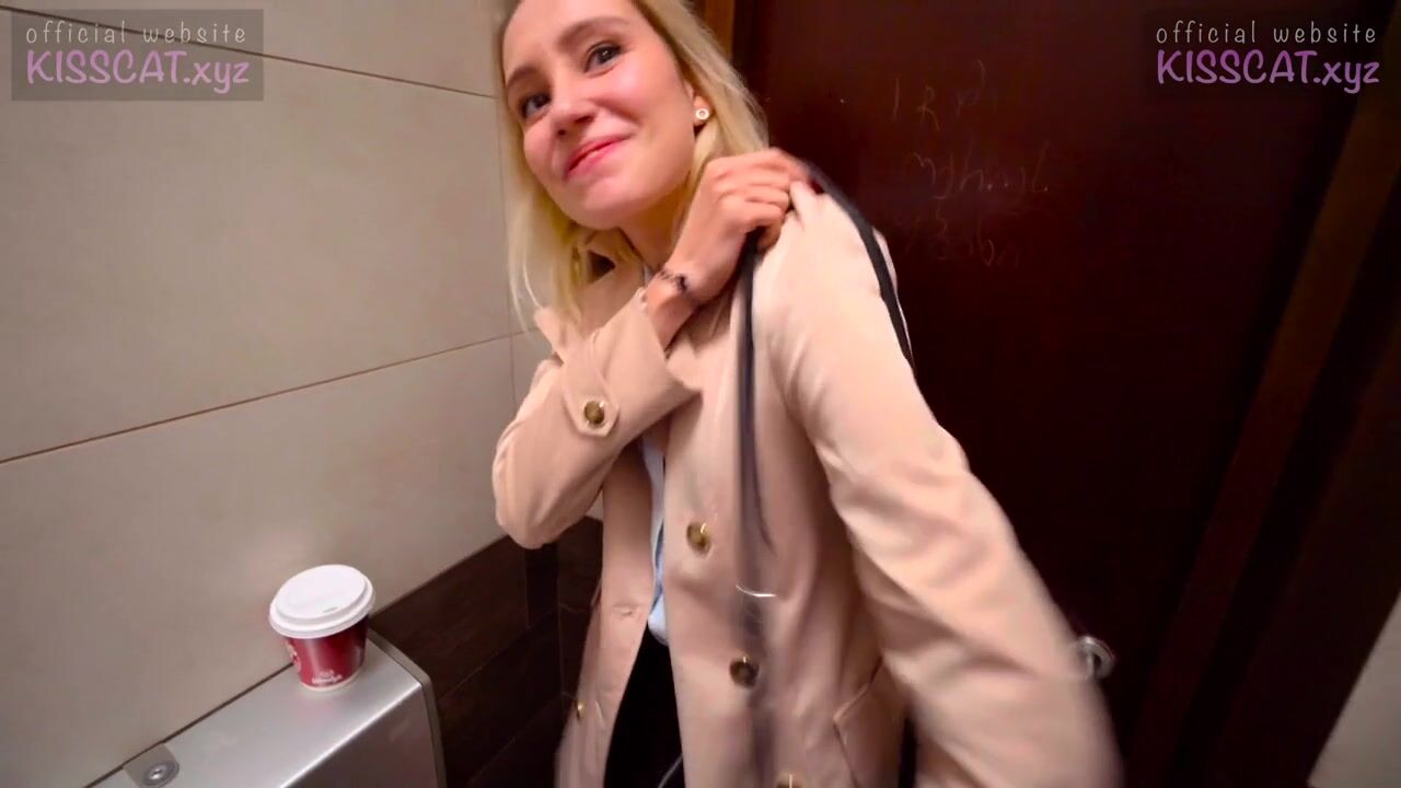Русский чувак кончил в ротик подружки после минета в туалете кафешки