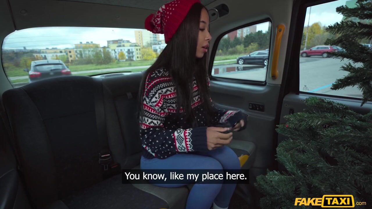 Рождественский секс в чешском такси с сексуальной брюнеткой Лией Лин