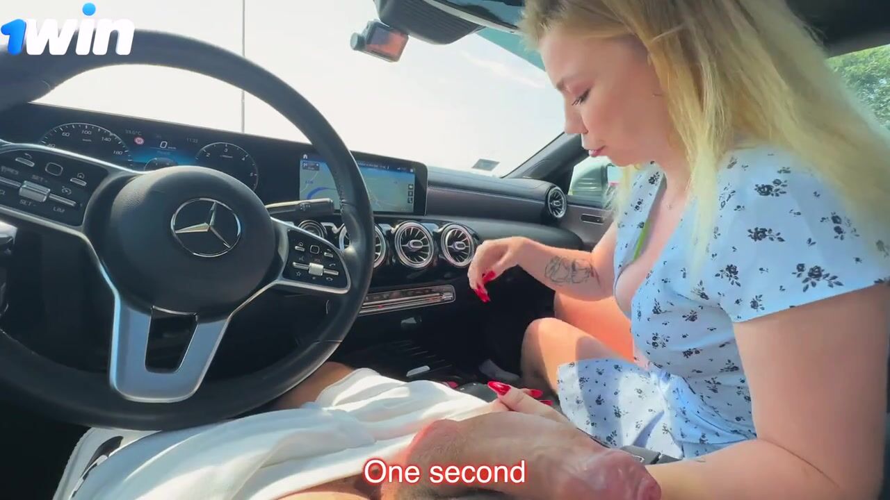 Белокурая русская шлюха проглотила сперму хахаля после минета в машине